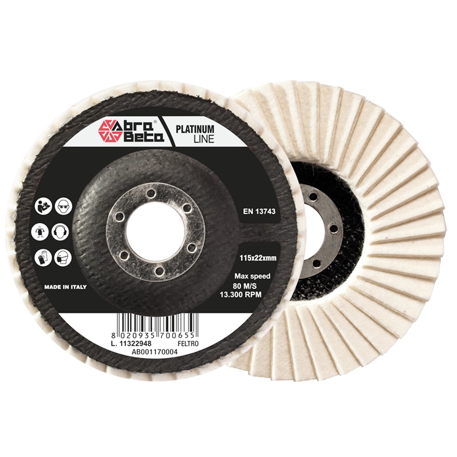 Mono Flap Disc Abra Beta Felt, usable for polishing operations on all types of steel, combined with abrasive polishing pastes.