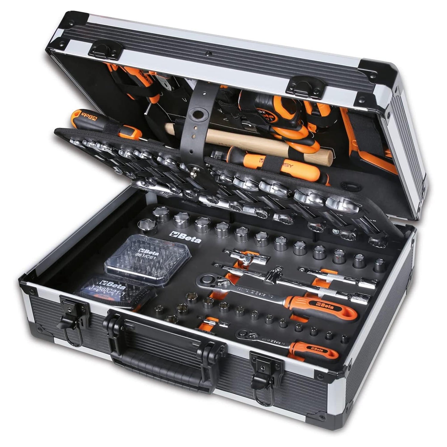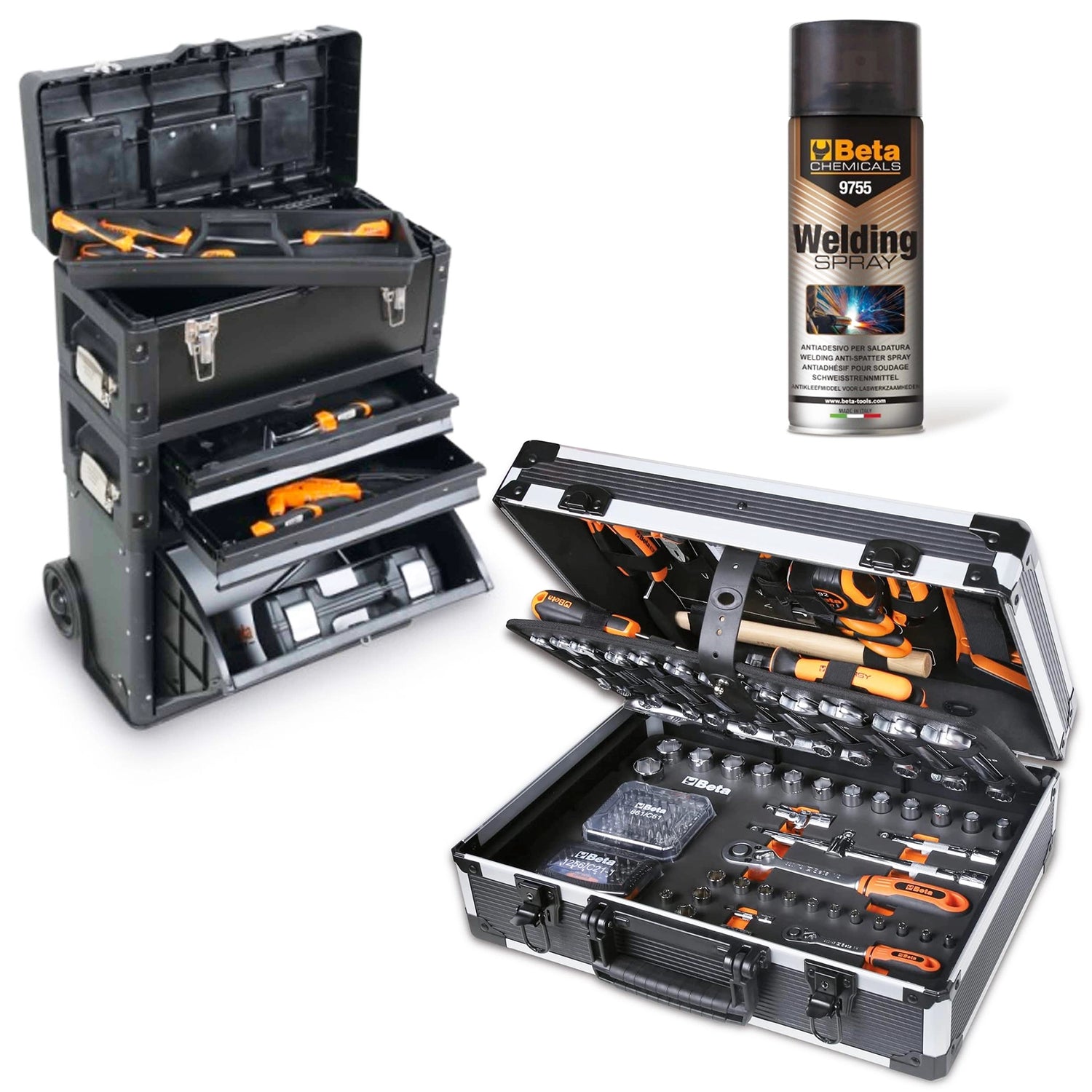 The Bundle Beta 2056E+BW4300E/21 is the ultimate solution for those looking for a complete system of transport and organization for work tools. Perfect for professionals who need an efficient and portable storage space, this set combines the sturdiness of the Briefcase Beta 2056E with the convenience of the Trolley Beta BW 4300E/21, enriched by 212 high-quality tools. In addition, with the purchase, you receive in free anti-adhesive spray Beta 9755 to keep your tools in perfect condition.