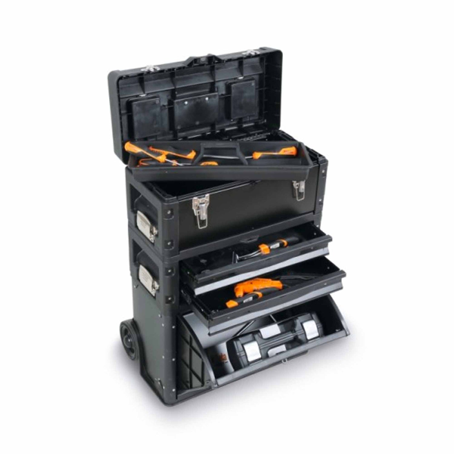 Buy the Bundle Beta 2056E+BW4300E/21 on EmmetiStore.it means getting a sturdy and practical storage system, accompanied by high-quality tools, perfect for any type of maintenance. The mobility of the trolley and the wide assortment of tools make this set the ideal choice for those who want to tackle every job with professionalism and efficiency.