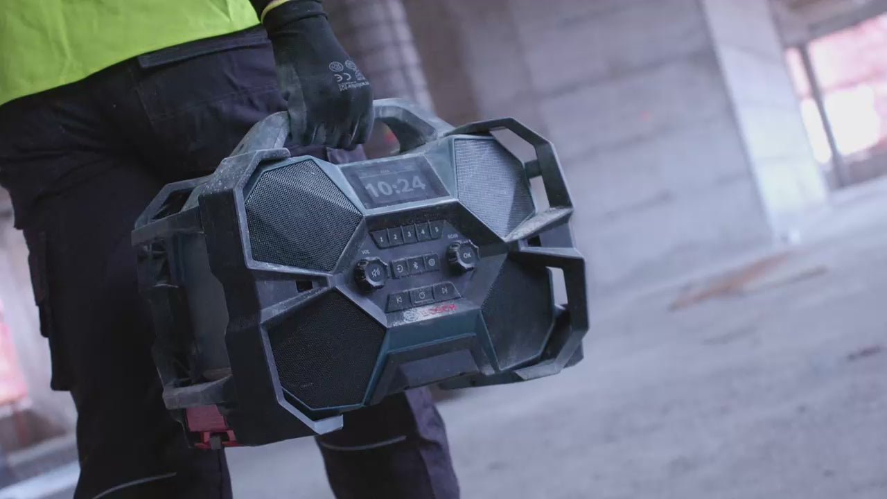 Es dient zum Hören von Musik und Nachrichten auf der Baustelle oder in der Werkstatt über DAB+ und FM-Radio oder Bluetooth- und AUX-Anschluss und verbessert so den Bedienkomfort und die tägliche Produktivität. Qualität beim Hören.