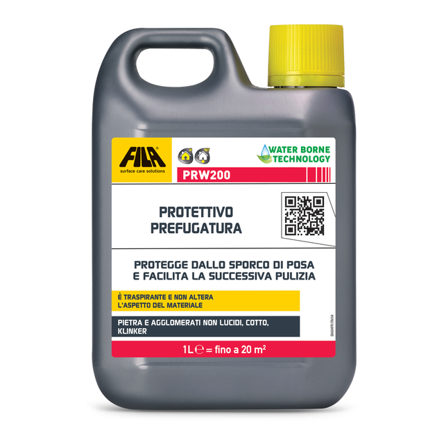 The Fila PRW200 1L Protective is a water-based waterproofing product ideal for pre-grouting natural stone, non-polished agglomerates, terracotta and klinker. This professional product greatly facilitates grouting and post-installation cleaning operations, maintaining the natural appearance of the treated material unchanged.