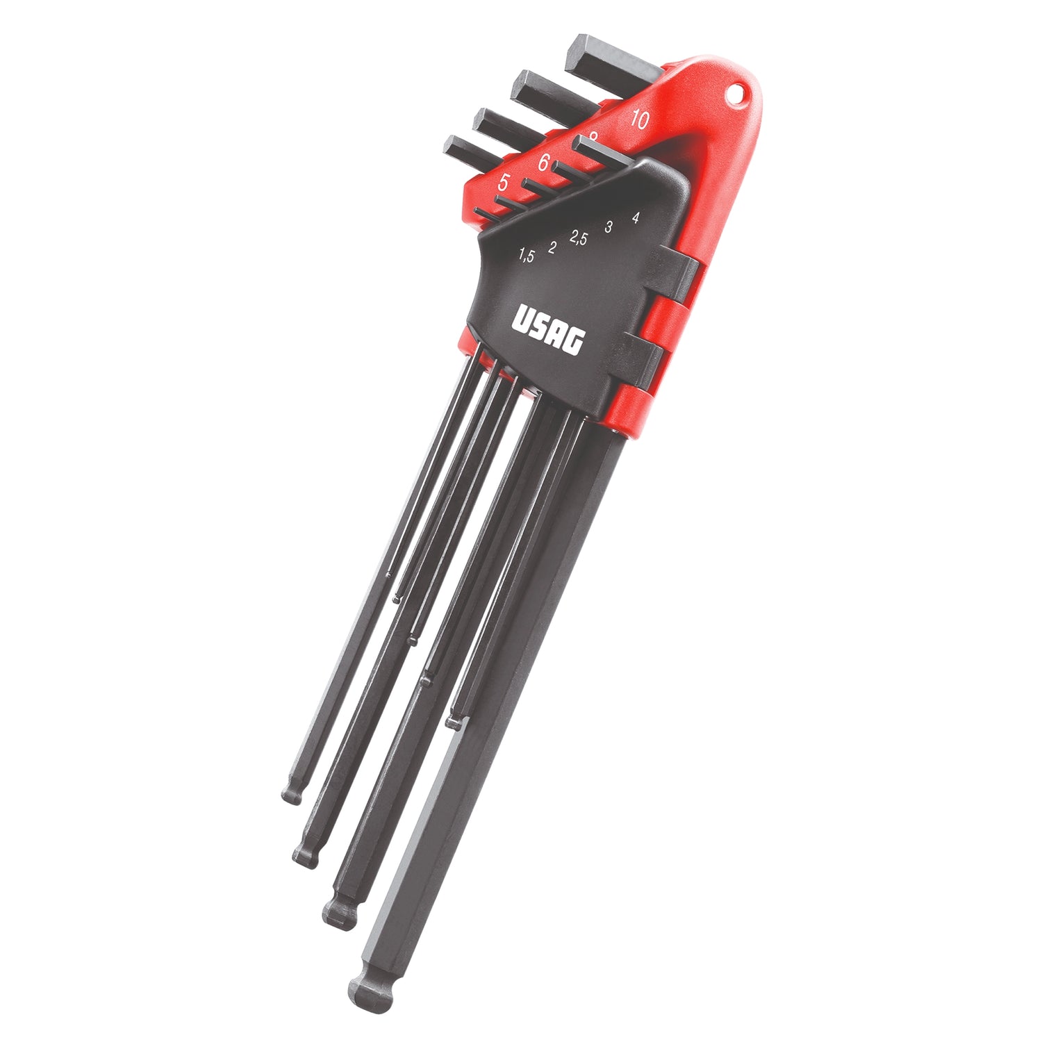 Hex Keys Usag  280 XLTS/S9, Set of 9 extra-long ball-head hexagon keys. For screws with hexagon socket. Model that allows you to operate with inclinations of up to 25° with respect to the screw axis