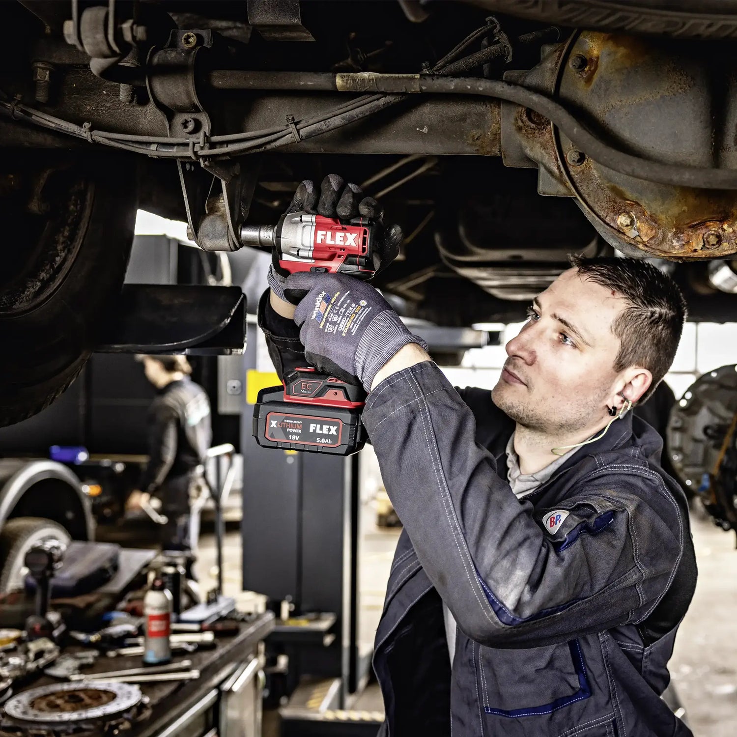 The Flex IW 1/2 EC C 18V It offers high tightening and loosening performance with torque up to 350 Nm in unscrewing, three-stage adjustment, and advanced electronic control. Compact, robust, and compatible with all batteries. FLEX 18 V, is the ideal solution for professionals who require power, precision and durability.